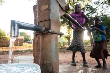 CHOBE, BOTSWANA - OCTOBER 5 2013: Poor African children wander through the desert like Chobe National Park. This year was declared as a drought year by the government in Botswana, Africa
